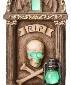 For Living Battery-Operated Gravestone With LED Light, Indoor Halloween Decor, Grey, 29-in