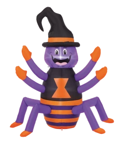 For Living Inflatable Happy Spider, LED Lights, Weather-Proof For Halloween, Purple, 4-ft