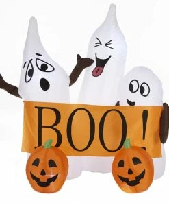 For Living Inflatable Ghost Scene With BOO Sign, LED Lights For Halloween, Orange, 5.5-ft