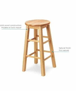 For Living Solid Wood 24″ Bar Stool Armless Backless, Natural Finish