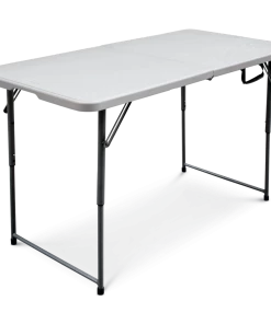 For Living 4-ft Portable Height Adjustable Plastic & Metal Folding Table With Handle, White