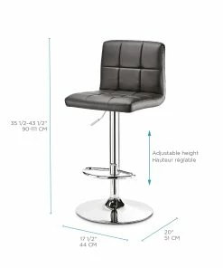 For Living PU Leather Swivel Counter/Bar Stool Adjustable Height (2-Piece Set), Black