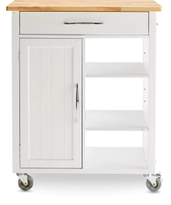 For Living Wood Top Kitchen Utility Storage Cart/Island With Locking Wheels, White