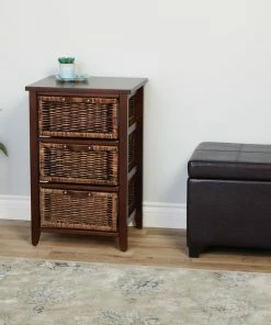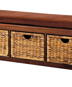 For Living Verona 3-Drawer Entryway Storage Bench Seat Cushion & Wicker Baskets, Espresso