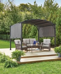 For Living Cambrian Square Outdoor/Patio Pergola W/ Adjustable Sun-Shade, Brown, 10×10-ft