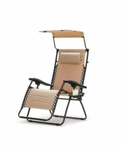 For Living Oxford Sling Zero Gravity Chair/Recliner W/ Sunshade & Headrest, Beige, XL