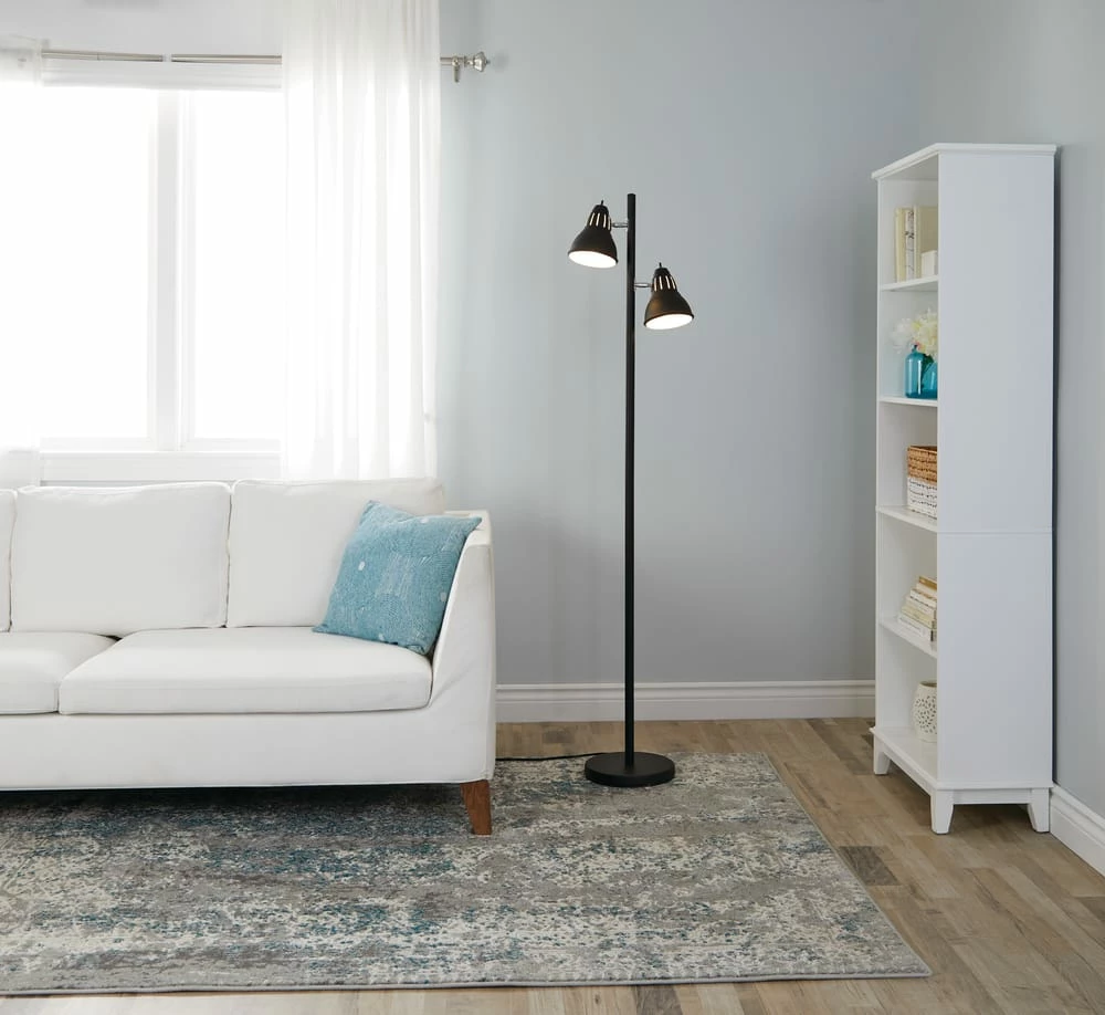This functional and attractive For Living Double-Head Floor Lamp is a brilliant lighting solution that’s versatile and ideal for any room in your home. Steel construction is finished in black so it complements any type of décor. The fully adjustable shades from this standing lamp let you shine light where and when you want it for reading, and you can set the right mood with an oversized turn knob for easy on and off.