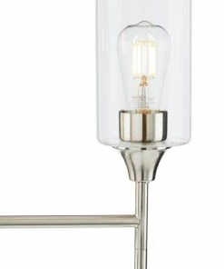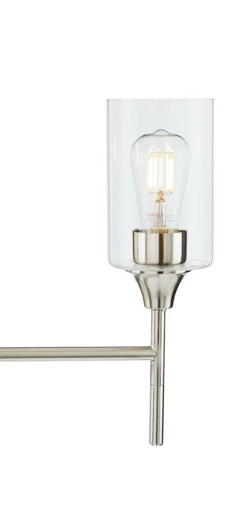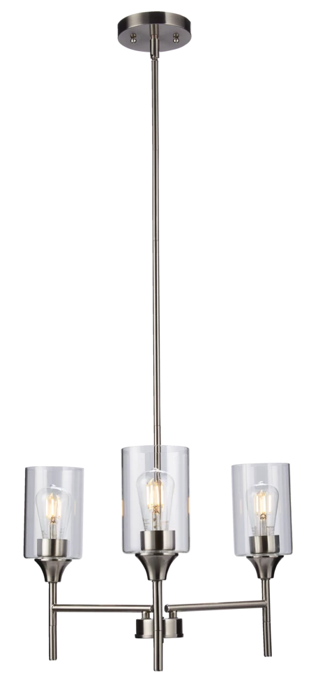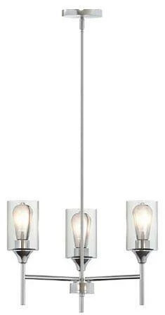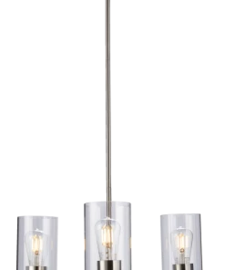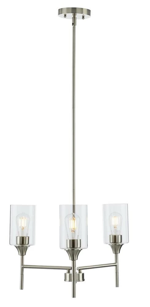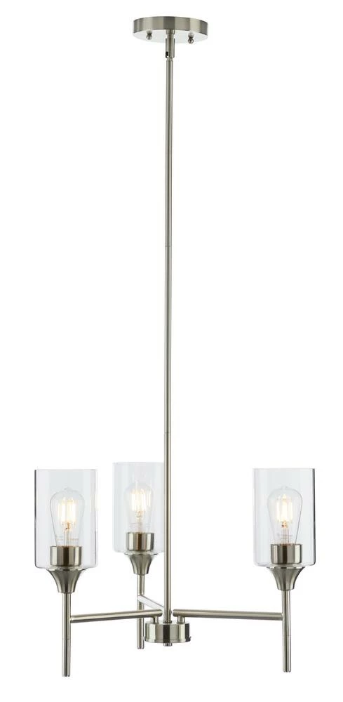 Add a dash of style and elegance to your dining room, entryway, or hall with the For Living Glass Chandelier with Clear Shades. This three-light glass chandelier features clear glass shades, which allow for the bulb to be visible at all times. This lets you select a bulb that matches the room’s aesthetic. With a stylish, clean brushed nickel finish, this chandelier offers a subtle, understated aesthetic that perfectly complements a wide range of contemporary and traditional décor, making it a versatile option for any space. The dimmable light design lets you adjust the brightness level when connected to a dimmer switch, so you can lower the light to create a romantic ambiance or brighten it when you need more visibility. This chandelier includes all mounting hardware and instructions for simple, convenient installation. With a three-pronged design and the bulb fixtures rising above the base, this chandelier adds an extra layer of depth to any room. Thanks to its sleek, versatile design, this chandelier will surely be the talking point of your next dinner party or family get-together.