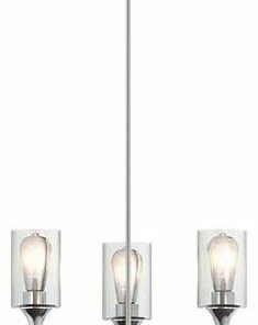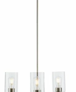 - Features an attractive 3-light linear chandelier with a brushed nickel finish