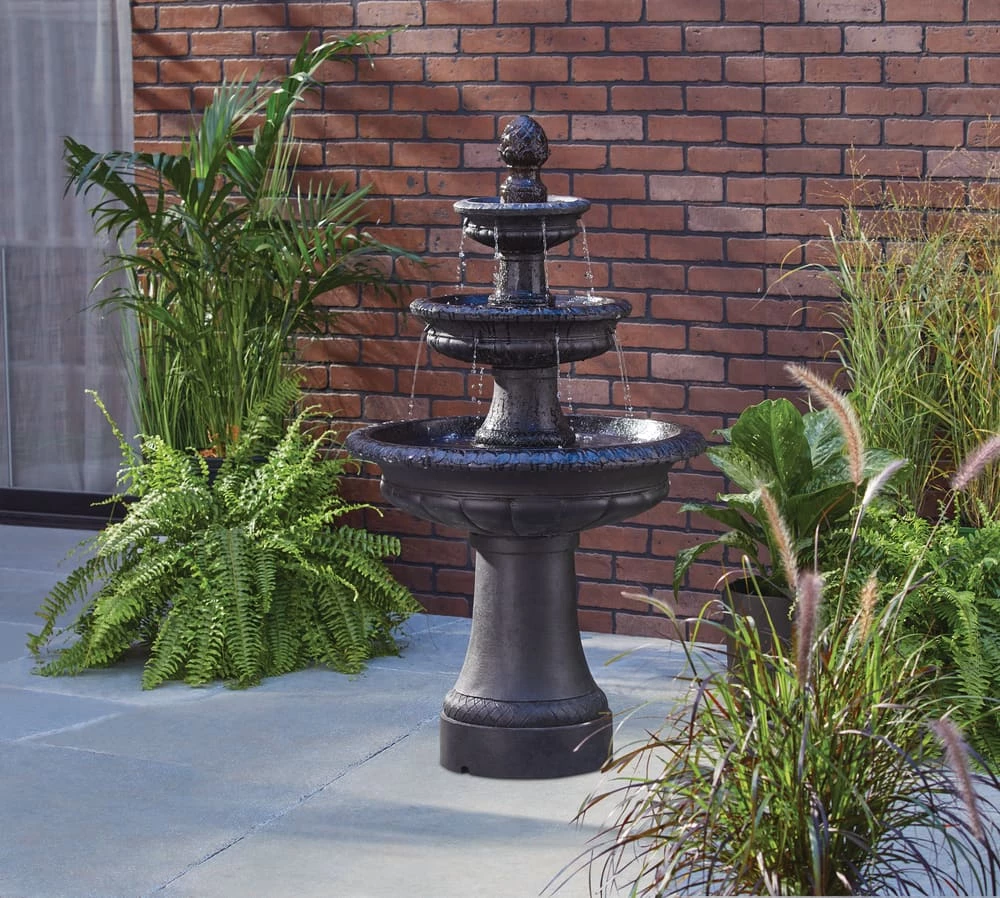 - The For Living 3-Tier Garden Fountain features three tiers for a mesmerizing fountain display