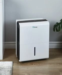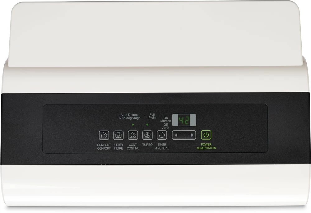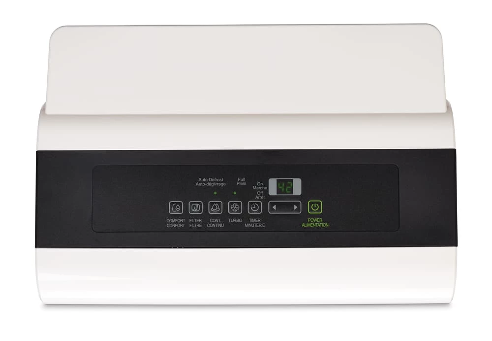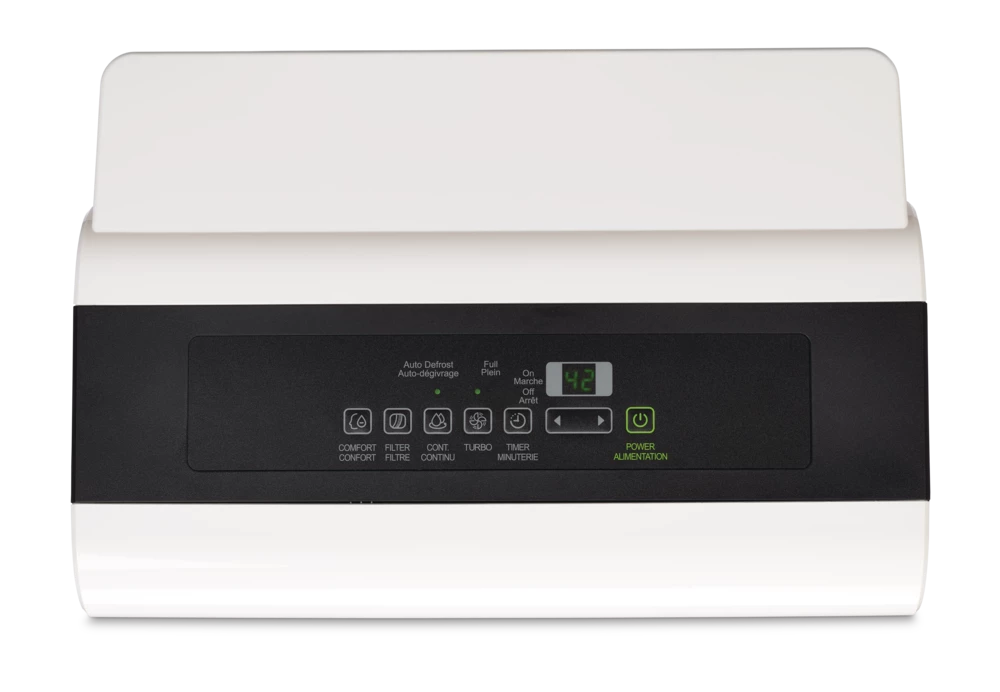 Moisture in your home or basement can lead to issues such as mould and mildew, but this For Living 30 Pint 2-Speed Dehumidifier will help you remove excess water from the air with ease. It has a roomy 30 pint bucket capacity, so you won’t have to empty as often. It also has a 24-hour on/off timer for convenience, combined with a low-temperature function that allows it to work in temperatures as low as 5 degrees Celsius (41 degrees Fahrenheit). With multiple settings, this dehumidifier can be set to run at Comfort for your home, Continuous for really damp areas like basements, or Manual if you want to control the run schedule yourself. When frost builds up, there is a defrost function that kicks in automatically to remove it safely and quickly. When the 30 pint dehumidifier’s bucket gets full, the unit will shut off automatically to protect the machine.