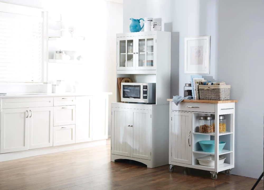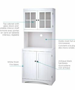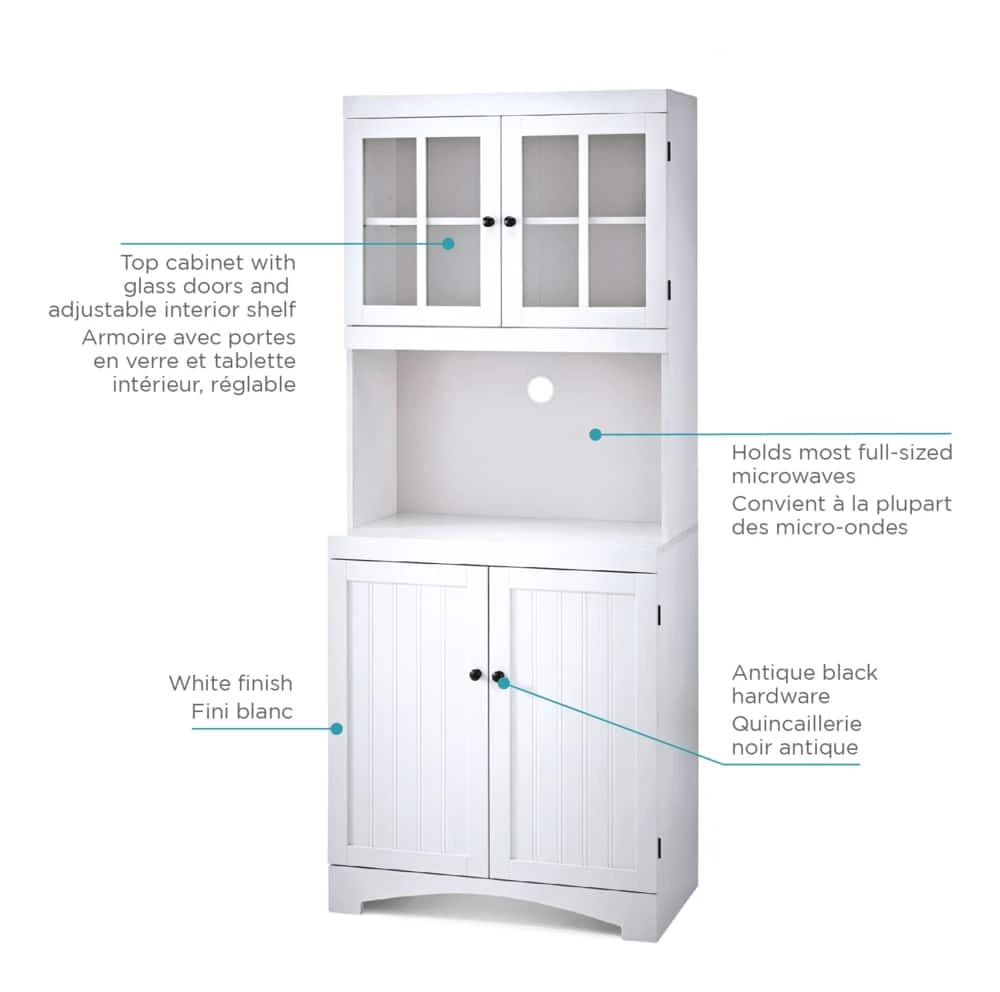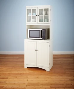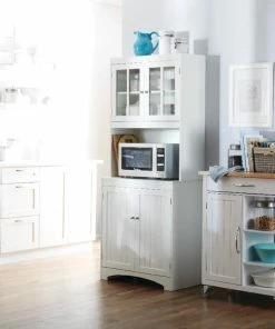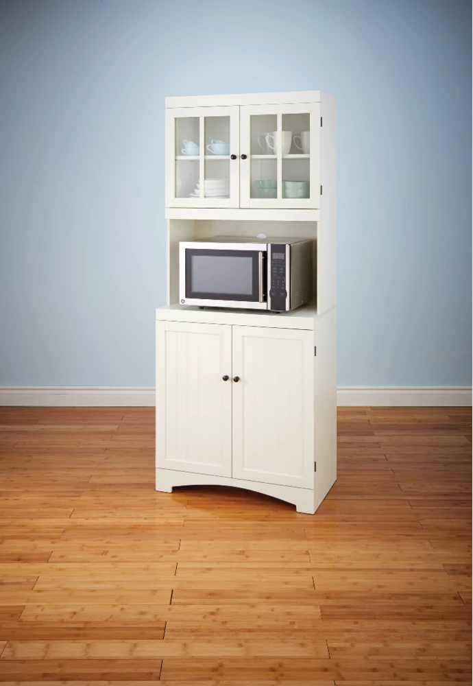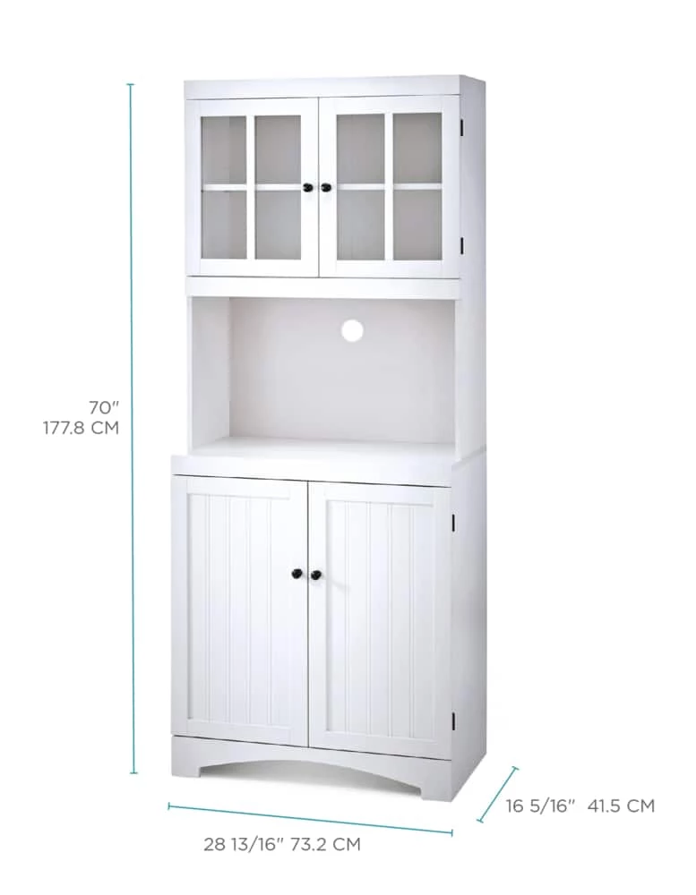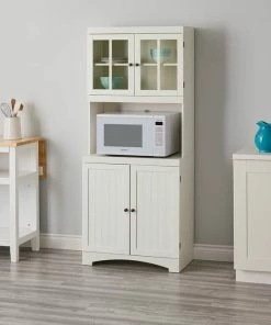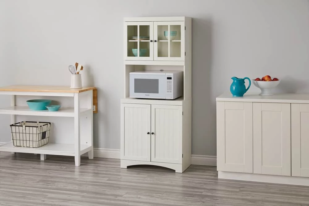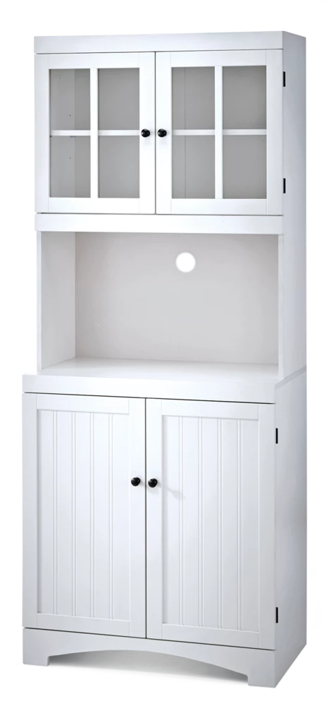 Keep your kitchen neat and organized with this For Living 4-Door Open Shelf Kitchen Centre Cabinet. The freestanding design of this pantry cabinet makes it easy to add more storage space in your kitchen wherever you need it. Designed to hold your kitchen essentials, this freestanding cabinet has a top and bottom cabinet where you can put away dishes, bakeware, pots and pans, pantry items and more for better organization and a clutter-free kitchen. The top cabinet features glass doors, so you can easily see and grab what you need, and also includes an adjustable shelf for customized organization. Plus, this freestanding pantry cabinet features an open shelf that can hold a microwave to help clear up space on your countertops. The cream finish on this pantry cabinet offers a clean, minimalist look that also blends in seamlessly with your existing kitchen decor. Versatile and stylish, this freestanding pantry makes a functional and decorative piece that enhances any kitchen.