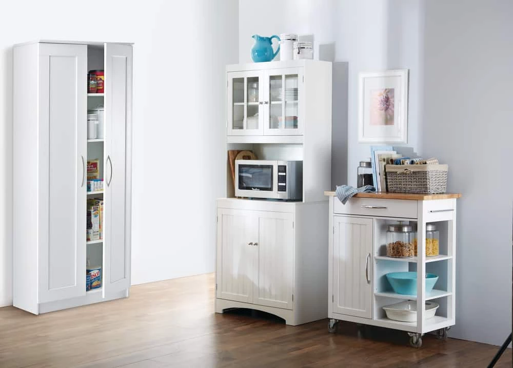 - This For Living Open Shelf Freestanding Kitchen Pantry Storage Cabinet is perfect as a stand alone piece for additional storage in your kitchen