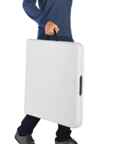 This 4 ft folding table is portable and easy to store making it a great option for picnics, parties, tailgating and arts and crafts. With a large durable surface and the convenience of three adjustable height settings, this table will quickly become a favourite for all your indoor and outdoor functions