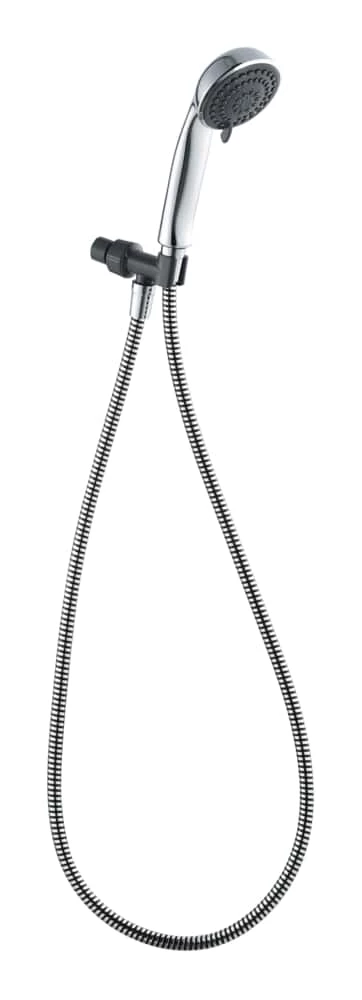 The For Living 4-Setting Handheld Showerhead helps you get more out of your showers. This convenient handheld plastic showerhead features four spray settings for a custom cleaning experience. The sleek chrome finish and lightweight-but-durable ABS construction makes this showerhead a versatile fit for any modern bathroom. A 60″ (152.4 cm) PVC hose gives you plenty of reach for showering or cleaning and this WaterSense showerhead meets EPA criteria for efficient in-home use.