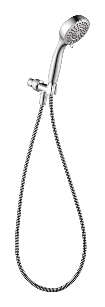 The For Living 5-Function Handheld Showerhead helps you get more out of your showers. This convenient handheld plastic showerhead features five spray settings for a custom cleaning experience. The sleek chrome finish and lightweight-but-durable ABS construction makes this showerhead a versatile fit for any modern bathroom. A 60″ (152.4 cm) PVC hose gives you plenty of reach for showering or cleaning and this WaterSense showerhead meets EPA criteria for efficient in-home use.