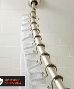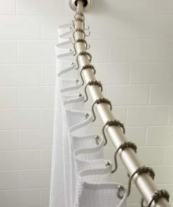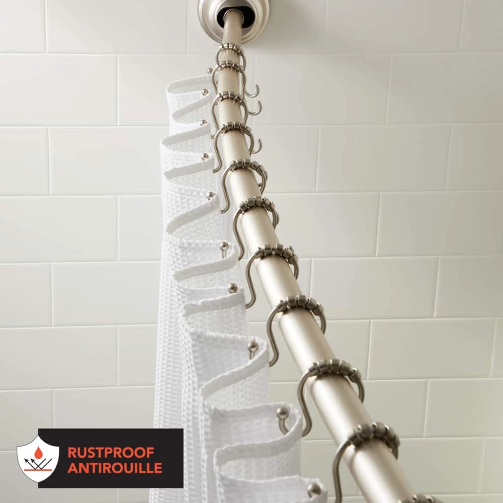 Extend the size of your showering area with the For Living Aluminum Dual-Mount Curved Shower Rod. Made of strong, lightweight, and rust-resistant aluminum, this shower rod features a curved design that increases the elbow room in your shower. The brushed nickel finish complements any modern bathroom and the versatile design can be tension-mounted or permanently mounted with the included hardware. Adjust the shower curtain rod from 50 to 72 inches to fit your space.