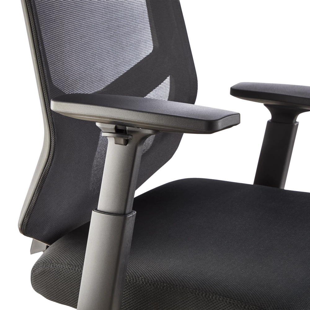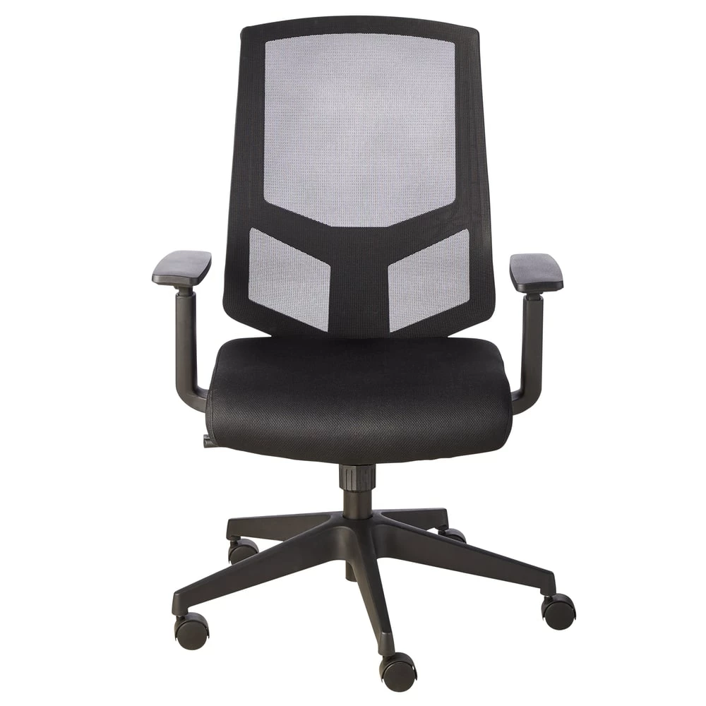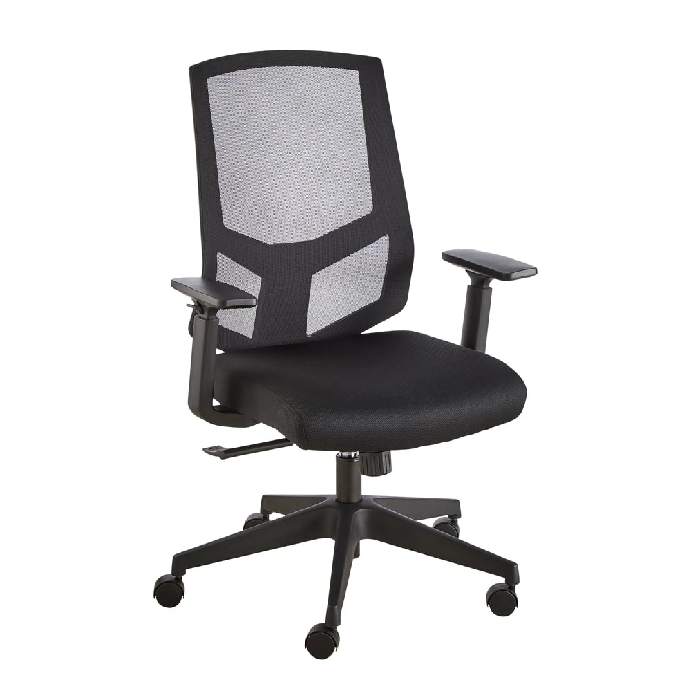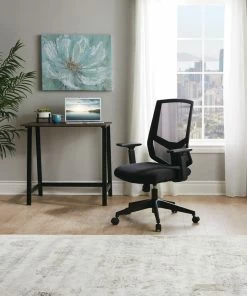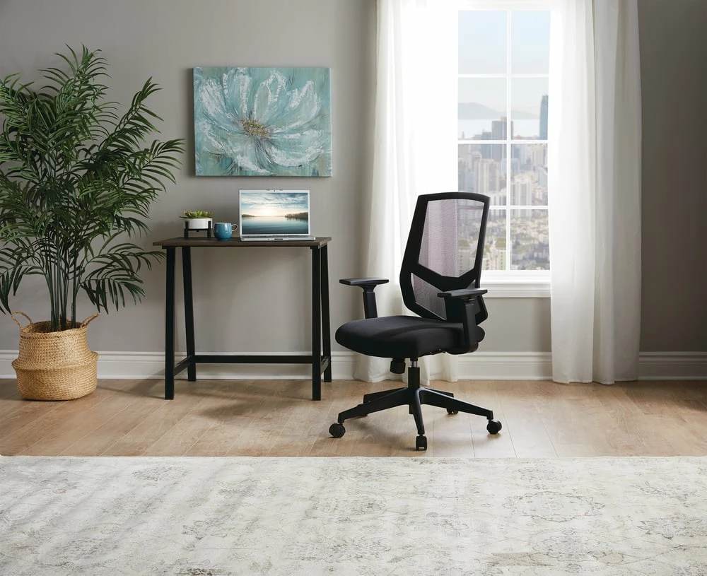 The For Living Adjustable Arm Office Chair comes loaded with features to help make spending time sitting in your office or home office more enjoyable. A comfortable and adjustable office chair can be the difference between a good workday and a bad workday, and this breathable chair always has your back. The black finish has a versatile aesthetic that easily complements virtually any modern or traditional decor, while the contoured padded seat delivers added comfort where you need it most. With adjustable-height armrests that range from 24 1/4-inches to 31 1/4-inches tall, it’s easy to customize the arm height of this chair for added comfort when typing. With a 360-degree swivel seat and a manual gas-lift lever on the side to adjust the height, this office chair is built to keep you comfortable through long hours at your desk. The castors allow you to roll around your workspace with ease, while the mesh back lets you sit back and relax with breathable support. The adjustable height feature makes it easy to achieve custom comfort with a seat-height range of 17 1/4-inches to 21-inches tall to match the height of both the user and the desk. Take your home office to the next level with this stylish, breathable, and versatile desk chair.