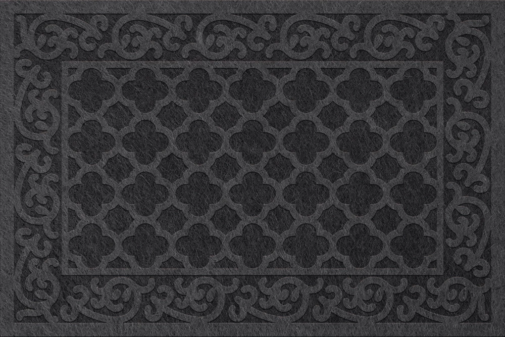 The For Living Andor Embossed Floor Mat offers a classic, sophisticated look for the entryway to your home. Built to withstand high-traffic spaces, this non-slip floor mat is stain-resistant so it keeps looking great for longer. It features a beautiful embossed design that also helps clean the dirt off your shoes. Made of 98% recycled materials, this grey floor mat comes in a variety of sizes for a custom fit.