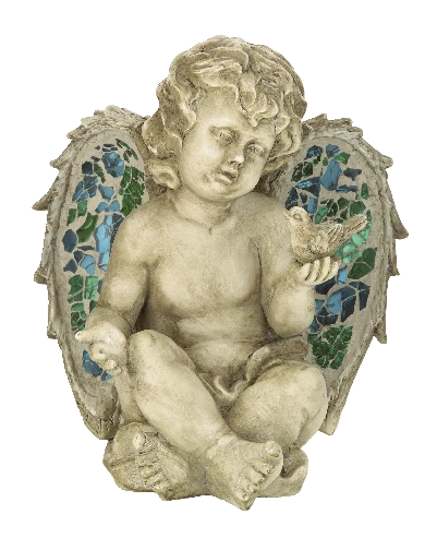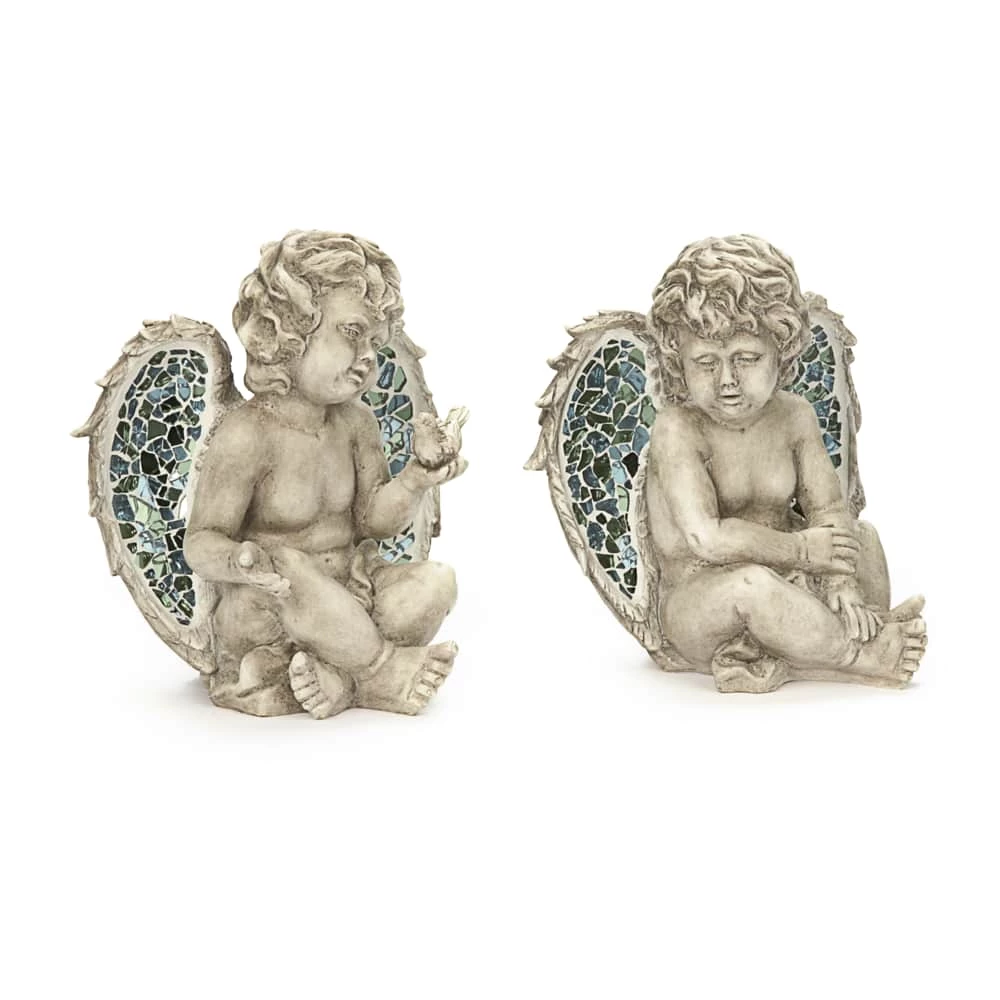 - The For Living Angel Statue is made from polyresin material with mosaic glass detail on the wings for durability and a sophisticated look