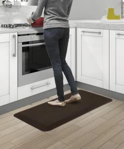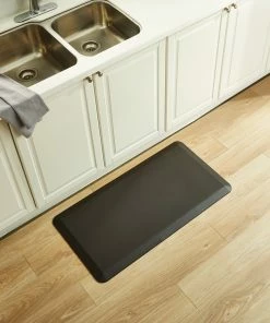 A must-have for anyone who spends lots of time on their feet, the For Living Anti-Fatigue Kitchen Mat is designed with 3/4″ thick 100% polyurethane foam, which helps reduce leg strain and back discomfort caused by long periods of standing on hard surfaces. The stain-resistant and easy-to-clean anti-fatigue mat can withstand spills, dirt, and daily wear and tear with ease, making it perfect for your kitchen, garage, or utility room.