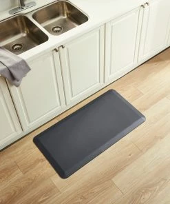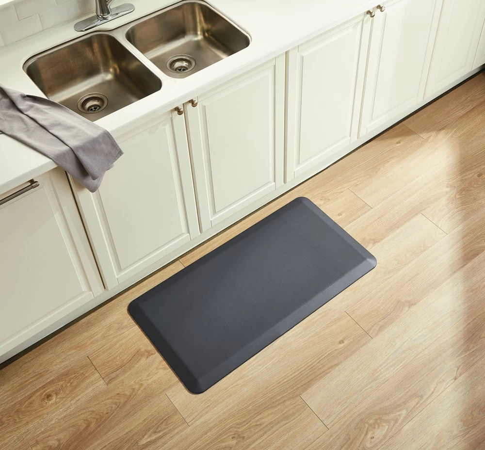 Use this For Living Anti-Fatigue Mat in the kitchen, garage, dining area or anywhere you will be standing for long periods of time. This office or kitchen fatigue mat provides continuous support to help reduce leg, ankle, foot and back pain from standing at the sink or a tall desk. The standing mat features a thick design that provides optimum support, and the non-skid backing also provides added safety against slips and falls.
