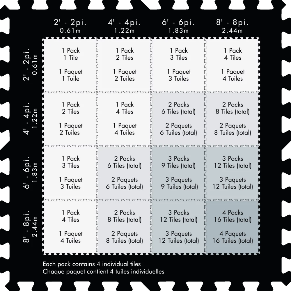 - Covers a 16 sq.ft area with the 4-pack of 2′ x 2′ mats