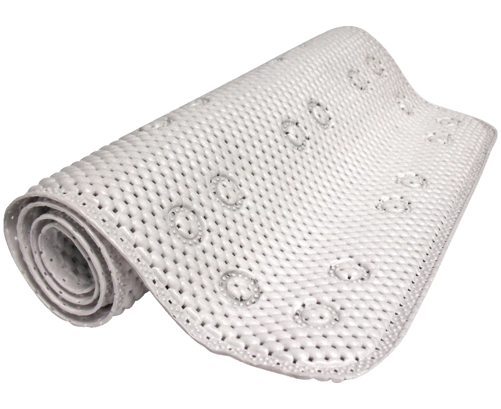 Feel steady on your feet in the shower with this non-slip For Living Foam Bath Mat. Stylish and comfortable under your toes, the bath mat with suction cups firmly grips your tub or shower surface for peace of mind. The white bath mat complements any bathroom décor and is easy to wipe clean. It’s ideal for any bathroom, especially those used by children or seniors, to help provide comfort and security while bathing.