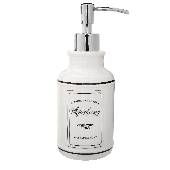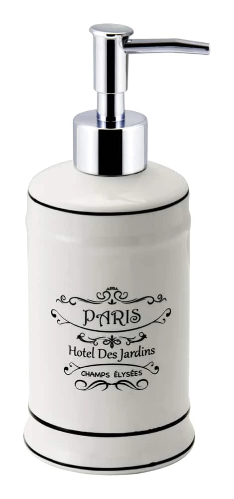 With a solid ceramic construction and contemporary design, the For Living Apothecary Soap Pump adds a sophisticated, upscale look to your bathroom. This ceramic soap pump is painted white with black details inspired by Paris for an effortlessly chic look that would fit right in at a French bed and breakfast or quaint holiday hotel. The ceramic material of this soap pump is easy to clean with soap and warm water for added convenience.