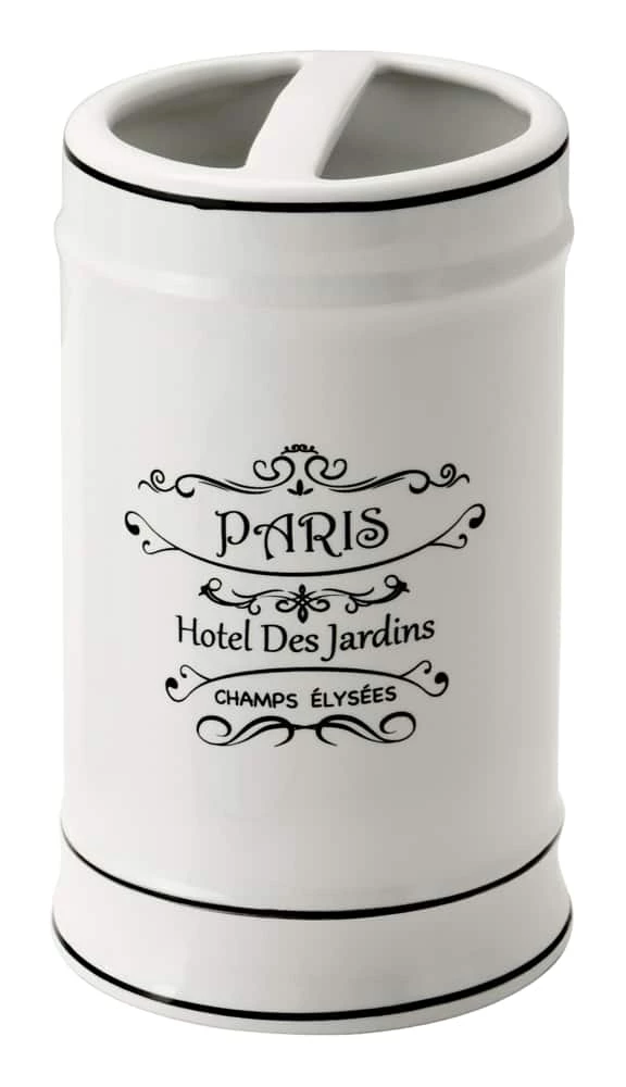 With a solid ceramic construction and contemporary design, the For Living Apothecary Toothbrush Holder adds a sophisticated, upscale look to your bathroom. This ceramic toothbrush holder is painted white with black details inspired by Paris for an effortlessly chic look that would fit right in at a French bed and breakfast or quaint holiday hotel. The ceramic material of this toothbrush holder is easy to clean with soap and warm water for added convenience.