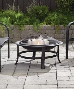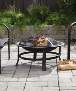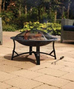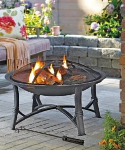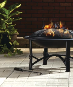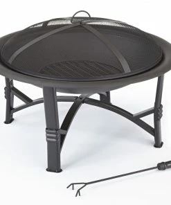 The For Living Augusta Round Wood Burning Outdoor Fire Bowl/Fire Pit will be an eye-catching and practical addition to your backyard oasis. This outdoor fire pit is made of durable stainless steel with a black finish so it will fit in with any outdoor furnishings you already have. Easy to move around your space, this fire bowl has four sturdy legs for proper support of the log-laden fire pit. The lift-off mesh screen on this wood-burning fire bowl prevents sparks and flames from flying out and burning those enjoying the heat and ambiance of the fire. The fire bowl/fire pit comes with a convenient fire poker so you can safely rearrange the logs as they burn. While it is so enjoyable to sit around a fire pit in the evening, there may be times when you simply want a little extra ambiance before turning in for the night. Just place a few candles in the bowl, which will give you flickering flames on a much smaller scale. They will be quick and easy to extinguish when it’s time to say goodnight. To protect your fire pit over the winter, a cover is available separately.