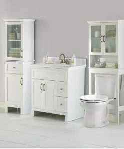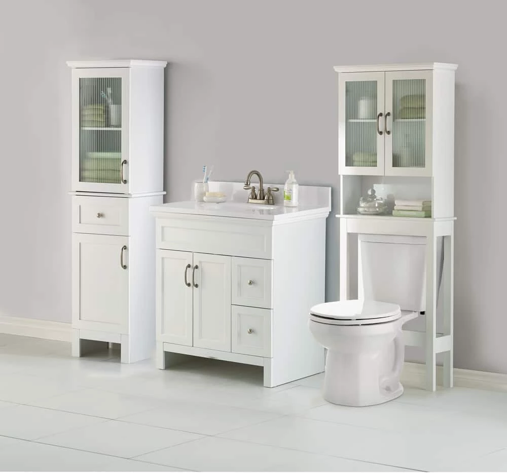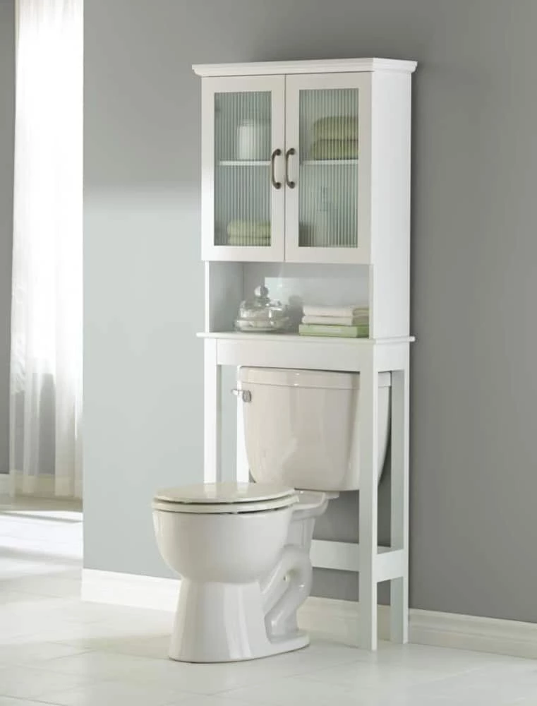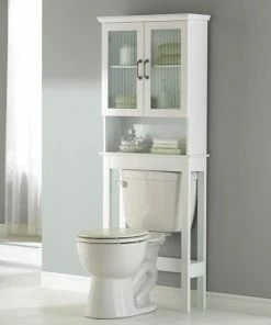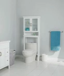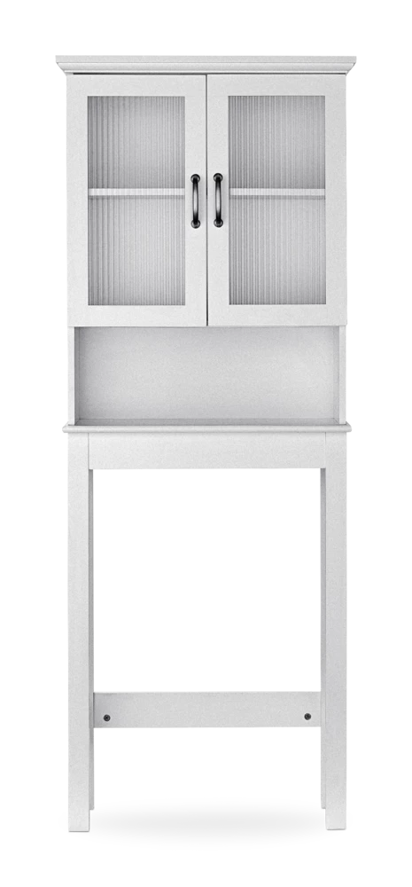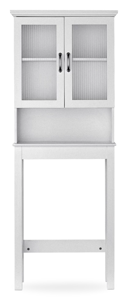 A must-have for any bathroom in need of extra storage and a subtle, understated accent piece, the For Living Beacon Hill Spacesaver 2-Door Over-The-Toilet Bathroom Storage Cabinet features two adjustable doors and an added shelf for ample storage space above your toilet. This bathroom storage cabinet fits over most standard-sized toilets, requiring the width of your toilet tank to be less than 20.1″ (51.1 cm) to fit in the space. With a white finish and tempered glass doors, this above toilet storage cabinet will surely complement any traditional or contemporary décor and add a stylish flair to your bathroom. You can use this bathroom cabinet to store extra toilet paper, makeup, soaps and creams, books, first-aid materials, towels, and much more – all with easy, convenient access. Measuring just 8.5″ in depth, this storage cabinet is not too big or bulky for the space, while the 65″ height ensures you can make the most of space in your bathroom that, traditionally, is not used to its full storage potential. This cabinet also comes with all hardware for simple, convenient assembly.