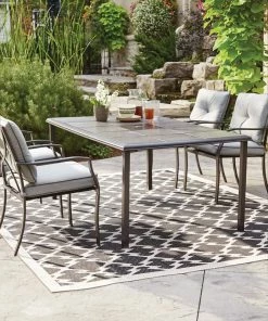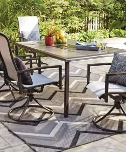 - The For Living Bluebay Rectangular Steel Outdoor Patio Dining Table features a sturdy steel frame with a brown powder-coated, rust-resistant finish
