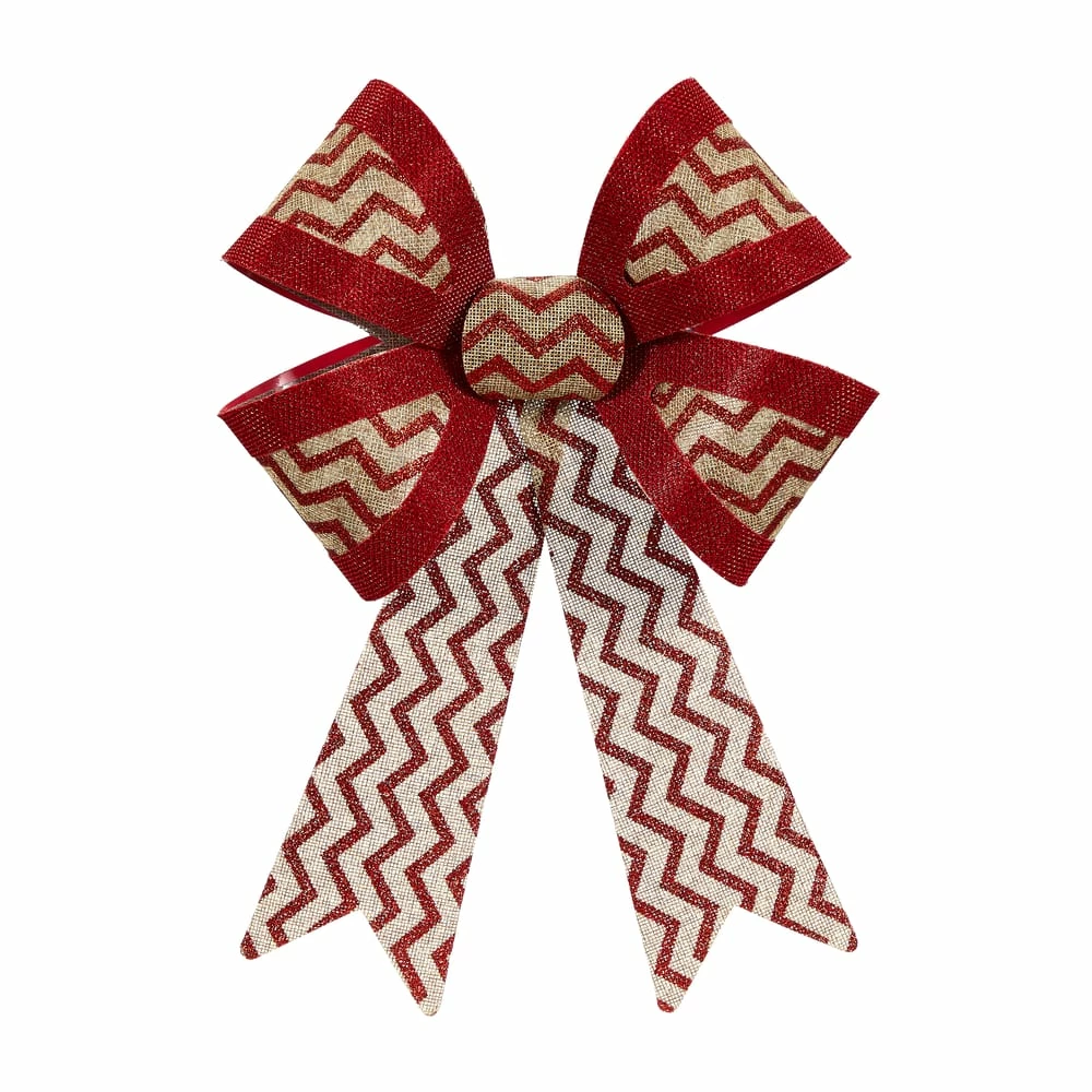 Complete your Christmas decoration by using this attractive For Living Burlap 4-Loop Bow. Add an elegant touch to your décor with this red loop bow featuring four loops for eye-catching impact. Adorn your Christmas tree or the wreath on your front door with this bow or place it as a decorative element on your mantel, the decorating possibilities are endless. This simple, elegant, and durable loop Christmas bow will serve you for many seasons.