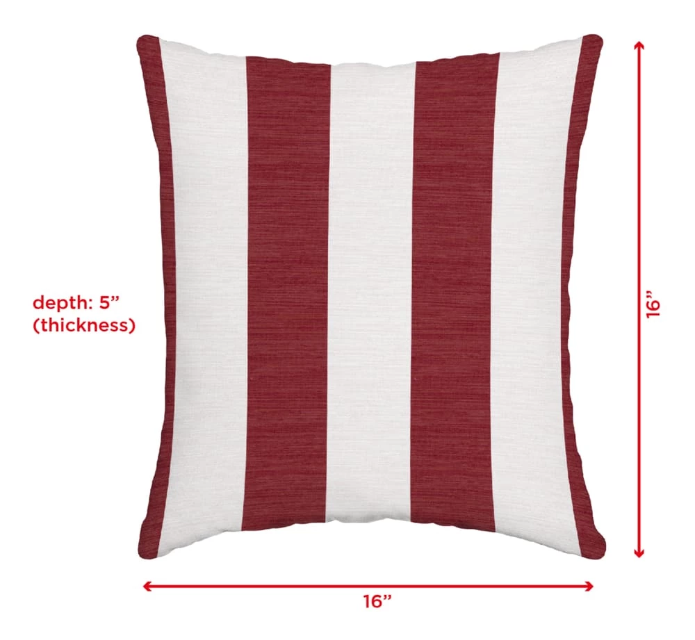 The For Living Cabana Stripe Toss Cushion adds style to your patio, deck chairs, and even indoor spaces. These charming pillows come in a variety of colours and are made from durable outdoor fabric that is stylish enough to be used indoors. The fill is made of 100% polyester, which helps this outdoor pillow retain its shape. Each pillow measures 16-in x 16-in and can be easily cleaned with a damp cloth.