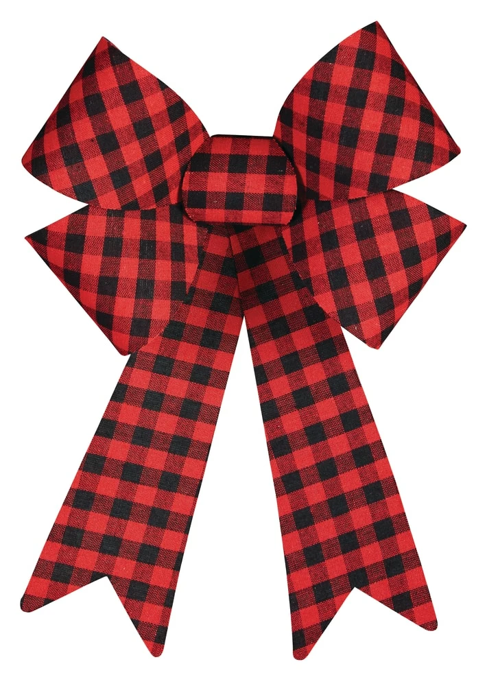 Add some rustic charm to your holiday décor with this For Living Buffalo Check Christmas Bow. The small Christmas bow is ideal for decorating your door, mantel, tree, or gifts this season. Its red and black buffalo check pattern is a classic complement to your country Christmas décor. Add to the spirit of Christmas with this 9″ bow made from durable materials that are suitable for both indoor and outdoor use.