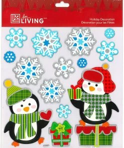 Get into the holiday spirit with these adorable For Living Festive Foam Clings. Available in assorted designs, the self-adhesive clings feature snowmen, snowflakes, penguins and more. These holiday wall clings can be peeled and easily stuck to any smooth clean surface and can be removed just as easily for your convenience. Great for decorating your home, store, or office space, these Christmas clings are a fun addition to your festive décor.