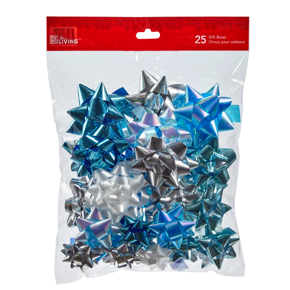 It’s beginning to look a lot like Christmas with this bag of For Living Gift Bows in blue. The mixed bag of metallic and iridescent blue tones is the perfect gift topper. Reminiscent of a snowy winter day, the decorative bows complement your favourite holiday gift wrapping. The gift wrapping bows come in packs of 25, which leaves plenty for presents, holiday crafting, and storing extras away for next year.
