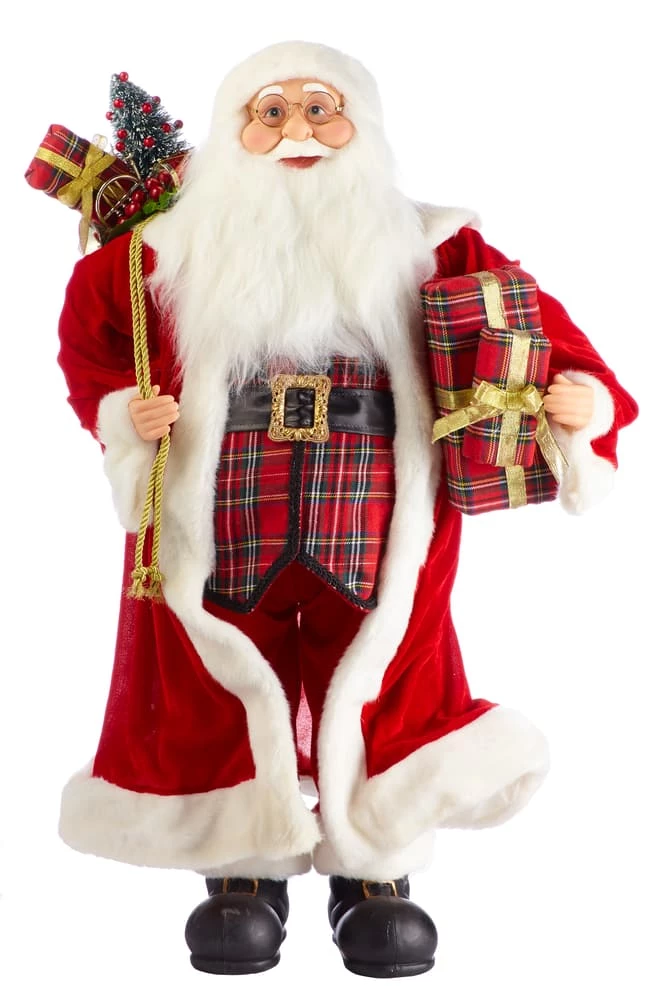 Welcome friends into your home with the For Living Festive Santa Greeter this holiday season. Dressed in his famous red and white suit, Santa Claus holds his Naughty or Nice list in his hands and carries a bag full of gifts on his back. Handmade by skilled artisans, this impressive Christmas table decoration is sure to become a favourite festive focal point of your home decor on a tabletop, mantel, or wherever you want to add some holiday cheer.