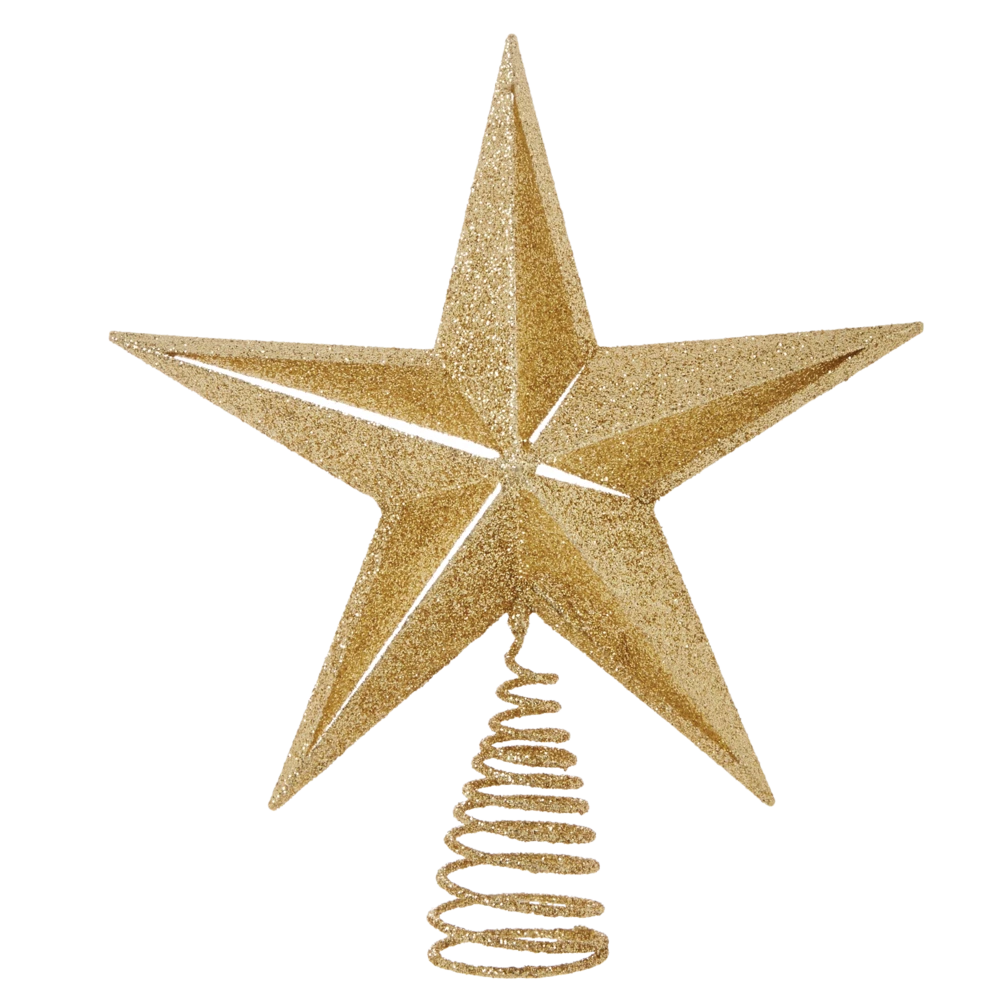 - The For Living Gold Glitter Star Tree Topper features a coil base, perfect for adding the final touch to your holiday tree