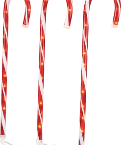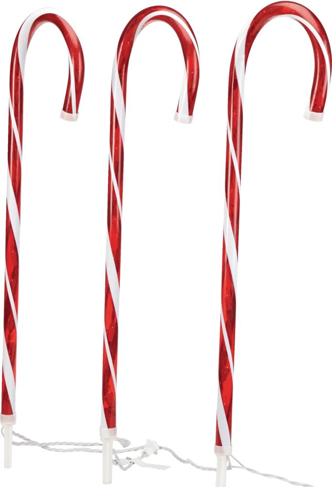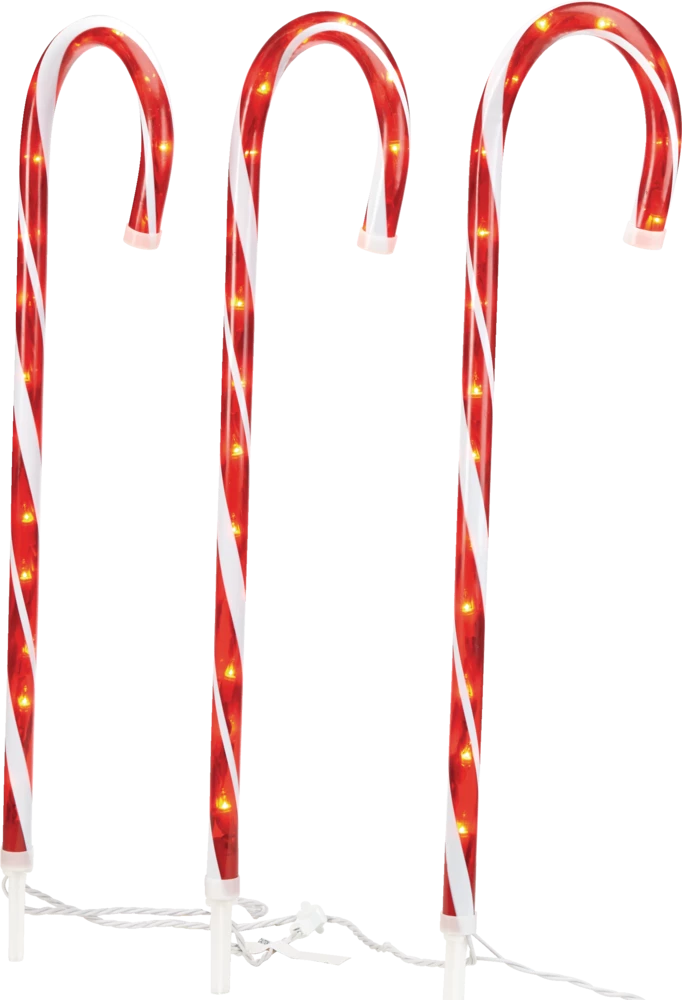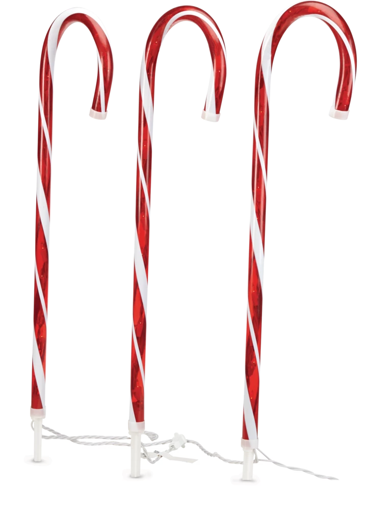 - Each pack contains 3 candy cane shaped incandescent stakes