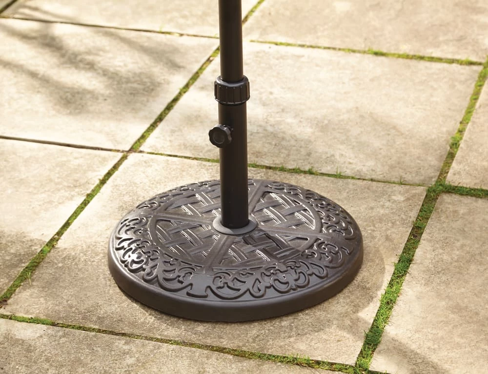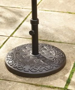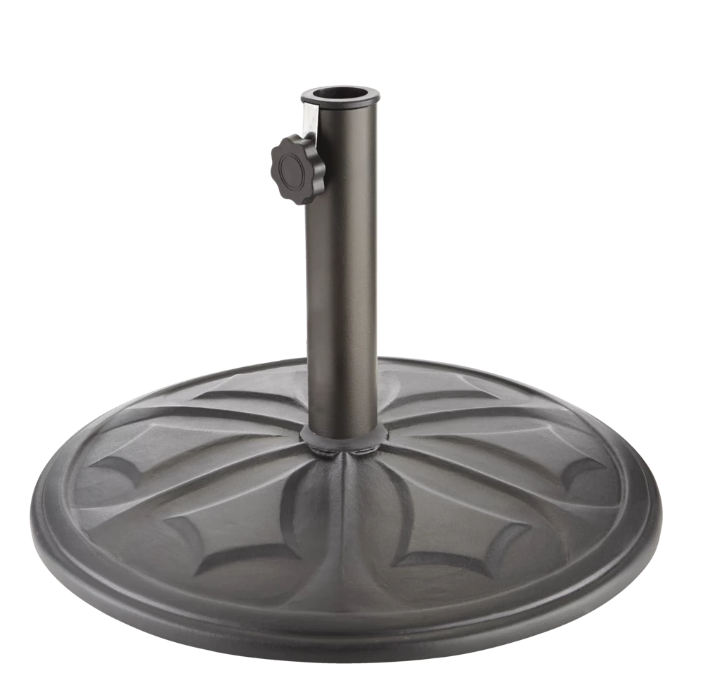 With a heavy-duty, weighted design, the For Living Concrete Patio Umbrella Base is designed for absolute stability and durability in outdoor environments. This 40-pound umbrella stand is constructed with all-weather concrete made to withstand harsh outdoor conditions and prevent cracks and breakages. This umbrella stand is compatible with umbrella tables and freestanding umbrellas. The easy-to-assemble design ensures you will have your patio umbrella stand set up in just a few minutes.