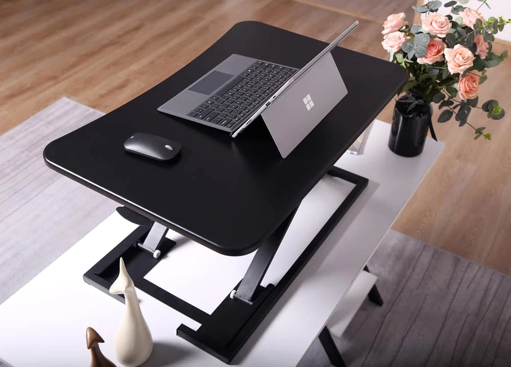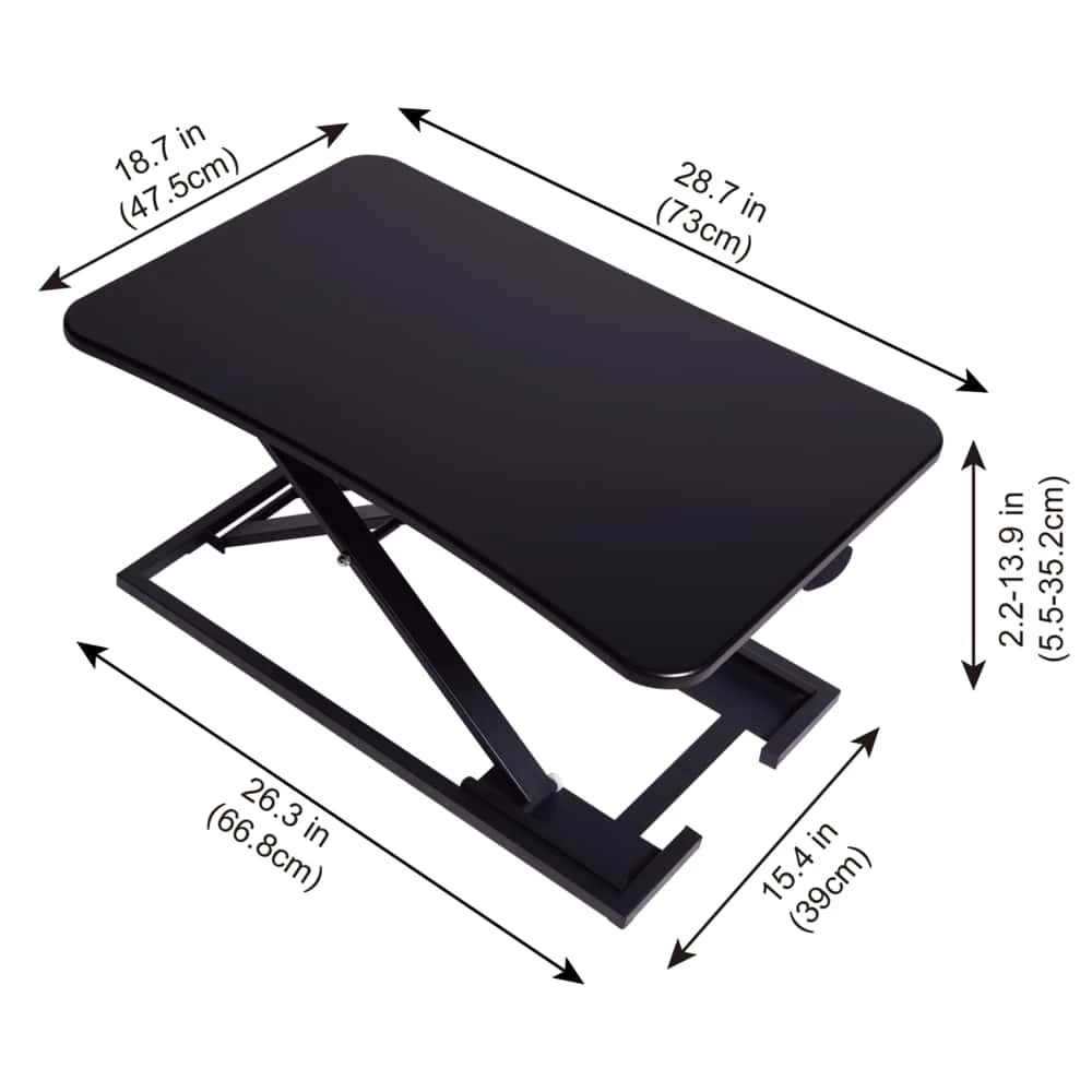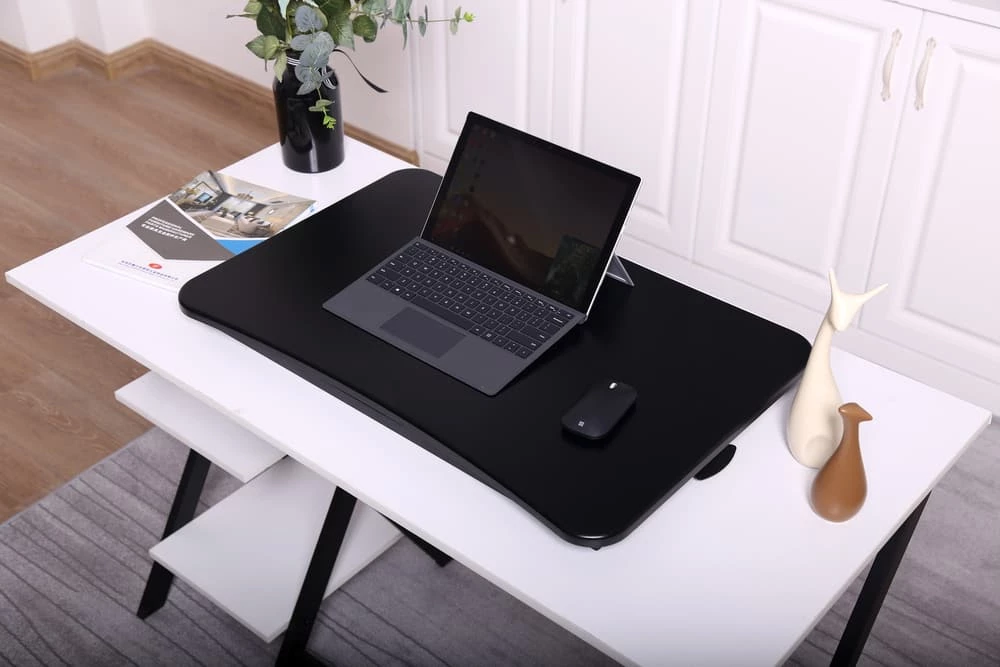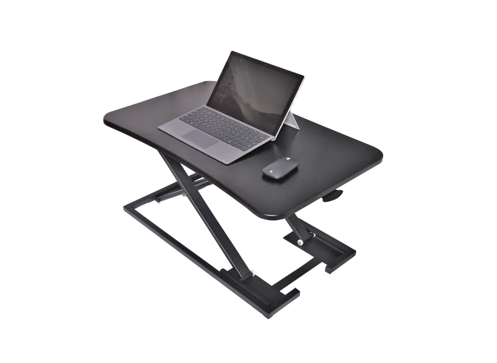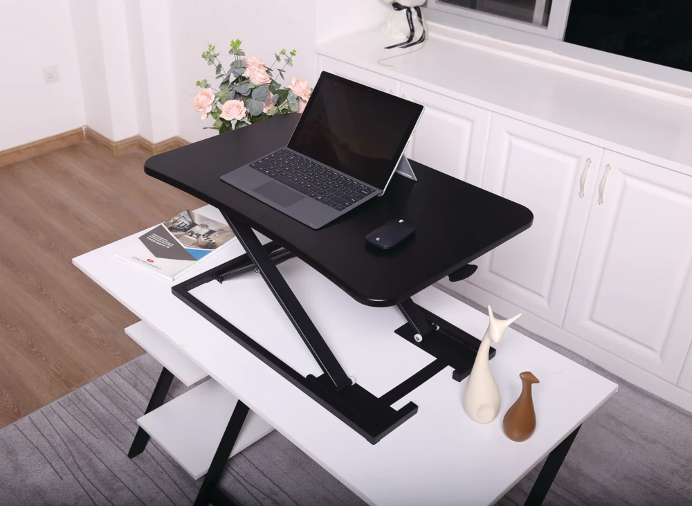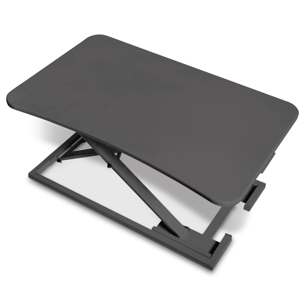 Get work done with greater comfort using the For Living Sit/Stand Desk Converter. It’s an ideal choice for use at the office or at home to maintain comfort while you get things done. Transitioning between sitting and standing throughout the day provides numerous health benefits such as increased blood flow and reduced aches and pains. Standing throughout the day also helps the mind stay alert and productive. Built with versatility in mind, this standing desk converter can also be used while sitting when you need a little break. The tabletop standing desk converter can be adjusted to your perfect height level with unlimited adjustable points between 2″ and 15.8″ from the base so you can stand and sit as you please. This ergonomic height range allows you to adjust the height based on your comfort level, so you can easily maintain proper posture and back alignment for fewer back injuries and greater comfort. The stand adjusts easily and can be converted quickly. Just squeeze the handle to release the lock lifting mechanism and adjust to your desired height. It also boasts a compact design that fits in small spaces while providing plenty of room for your monitor, laptop, keyboard, mouse, and more. You’ll also love that this stand up desk converter comes ready to use – just take it out of the box and get to work. When it’s not in use, the desk converter can be folded up and easily stored away.