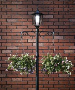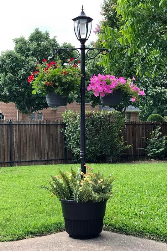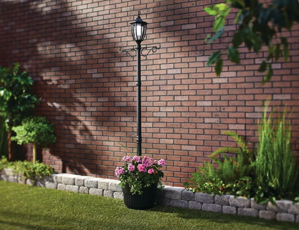 Featuring a timeless design blended with modern LED lighting and solar technology, the For Living Cresmont Outdoor Solar Lamp Post Planter is a classic lamp post for the 21st century yard, patio, or walkway. This attractive outdoor light includes a solar-powered LED bulb with three settings – white, amber, and off – so you can choose the lighting to suit your space. Opt for white light when you want to illuminate your walkway at night, or choose the amber light when you want a warm, romantic glow on your back patio into the late evening. The self-draining planter at the base lets you plant your favourite plants and flowers for added elegance and a natural charm. This patio light includes a ground mount to help prevent it from tipping over. Finally, this lamp post planter also includes two arm hooks at the top just below the light itself, so you can hang plants from above. This lets you create a beautiful and natural piece full of depth that will surely become the focal point of your space.