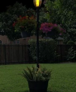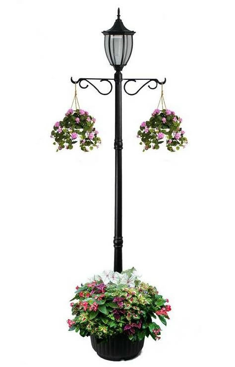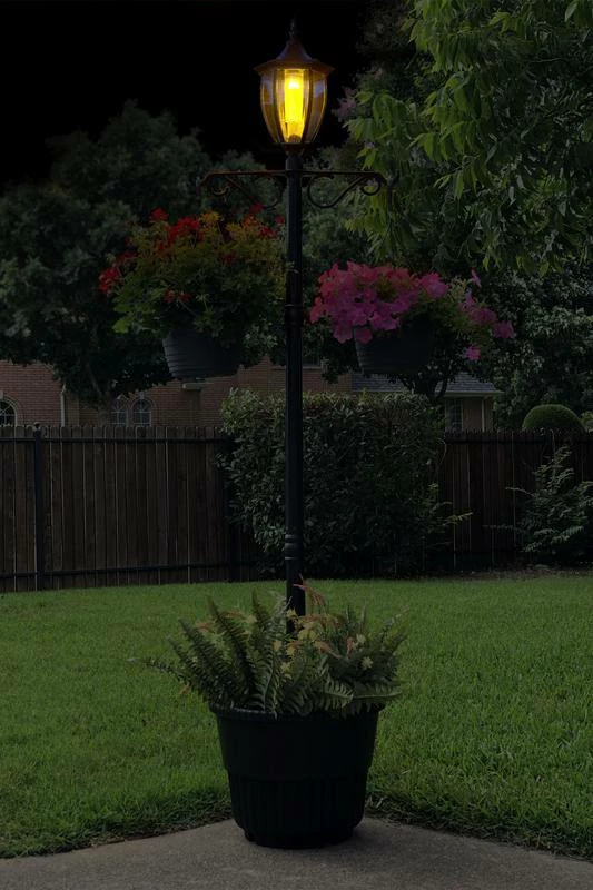 - The For Living Marigold Solar Lamp Post Planter is solar powered, featuring one LED lantern and a planter base for a warm, inviting aesthetic