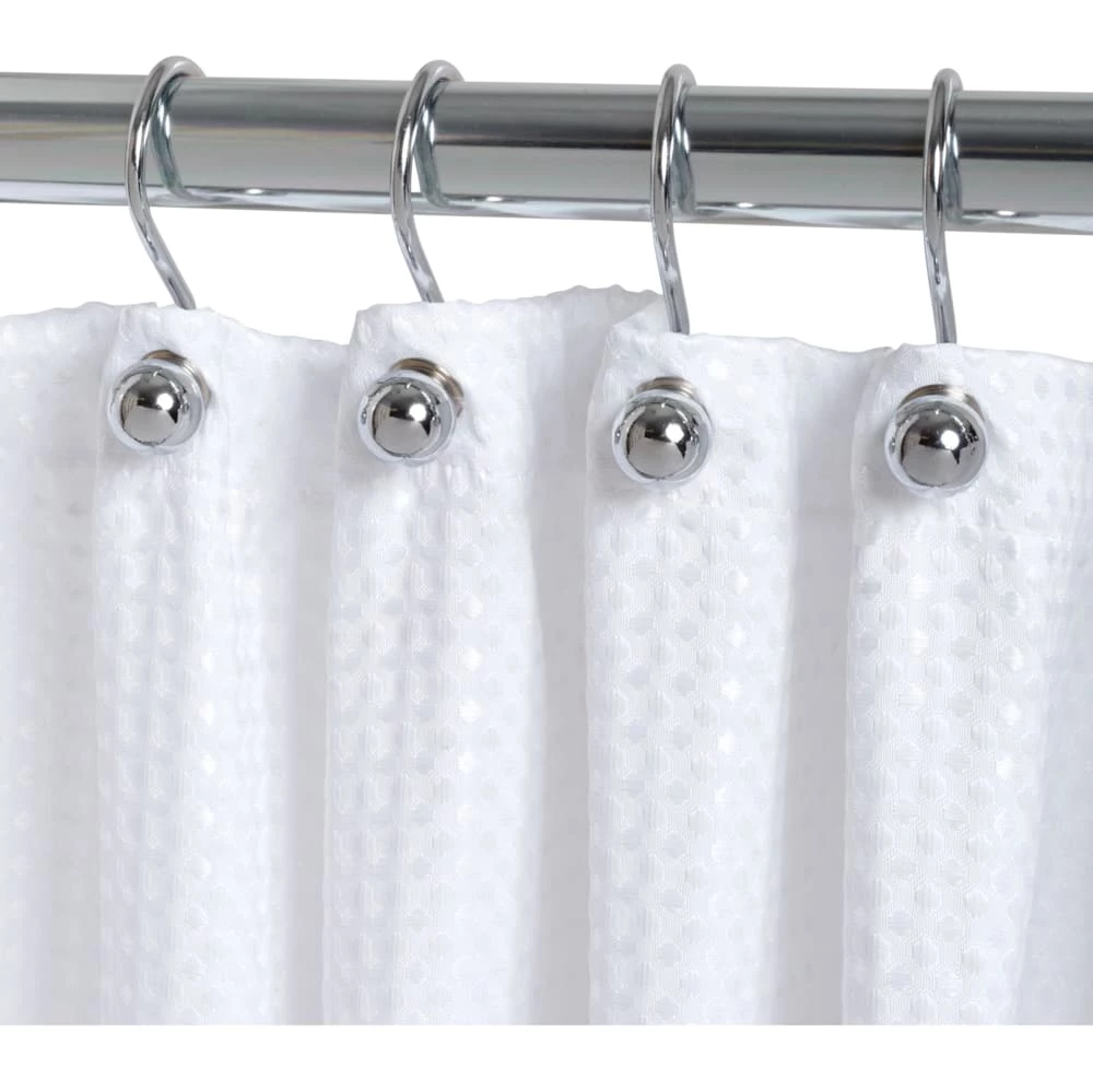 These Decorative Ball Shower Curtain Hooks from For Living coordinate with a variety of bathroom décors. The heavy-weight hooks feature silver chrome ball ends that allow for easy installation and removal of shower curtains and liners. The sturdy rust-resistant metal construction ensures the hooks last for several years to come. These steel hooks come in a set of 12 to conveniently match the number of holes on standard shower curtains and liners.