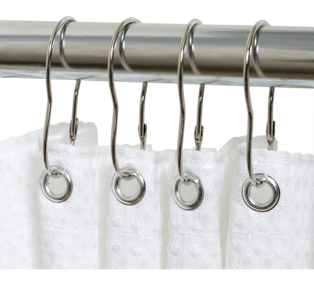 - Package of 12 rings to match number of holes on standard shower curtains and liners