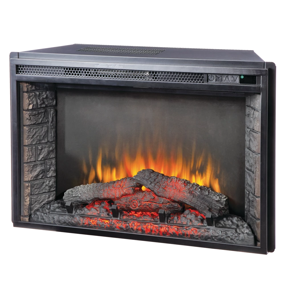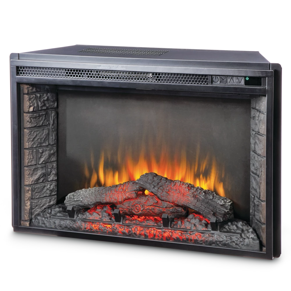 Featuring a 1400W fan-forced heater up to 4600 BTUs, the For Living Electric Fireplace Insert can provide supplemental heating for areas up to 400 square feet with ease. This elegant indoor electric fireplace is designed with a 5-level LED flame setting, so you can adjust the brightness level to suit the room. The fire and ember bed offers a realistic look that’s sure to impress. This gives your room a warm, comforting aesthetic. The flame can even operate without heat when you want to enjoy the romantic ambiance without supplemental warmth. For added convenience, this indoor electric fireplace features a timer ranging from 30 minutes to nine hours, while the child lock and safety thermal cut-off ensure added safety for children and pets around the unit. With push-button controls, a remote control, and an LED readout, you always know which settings are in action, and you can easily switch from one setting to the next. This indoor fireplace measures 29-5/8″ wide by 9″ deep and 18-7/8″ high. Add it to your bedroom, living room, home theater, or anywhere else you could use a little extra heat and a warm, vibrant atmosphere.
