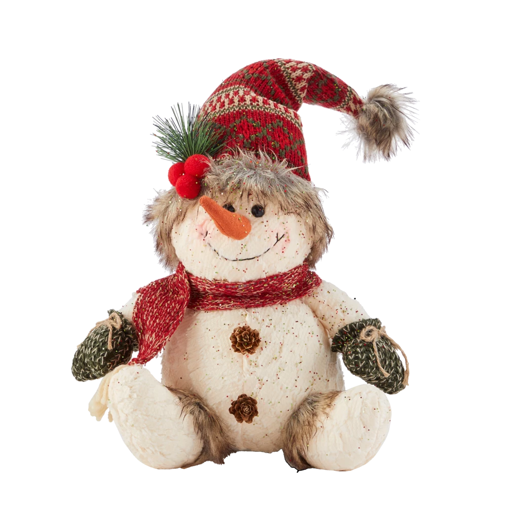 - The For Living Fabric Sitting Snowman is adorably designed to bring home the holiday spirit