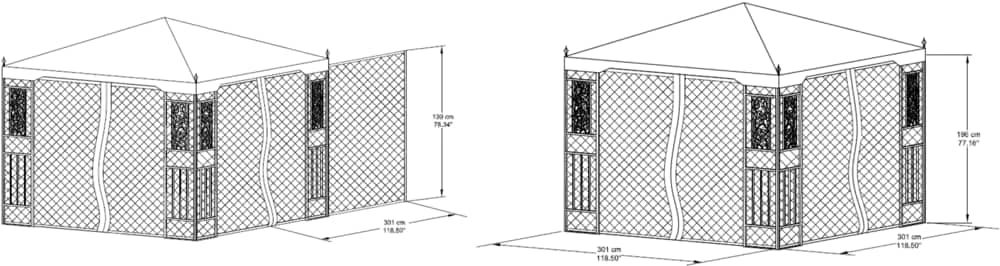 Enjoy your gazebo bug-free with the For Living Fabric Outdoor/Patio Gazebo Netting for the Lakeside Collection. This outdoor gazebo netting is durably constructed to keep insects out while still giving you and your guests maximum visibility when seated inside. This netting is made of weather-resistant polyester fabric that can be used season after season. The netting is fire retardant, too, making it a safer option for gazebos assembled near fire pits or bonfires. Measuring 118″ x 118″ x 78.75″ (300 x 300 x 200 cm), this durable patio gazebo netting is specifically designed to work with the Lakeside Gazebo. Worried about windy days? No problem. The netting is high quality and attaches to your gazebo with top-of-the-line Velcro straps that keep the gazebo netting firmly in place so you can enjoy kicking your feet up inside. Every package of For Living netting comes with four panels, enough to cover the exterior of your Lakeside gazebo to keep insects out and fun in. This square gazebo netting coordinates well with other elements of the For Living Lakeside Collection.